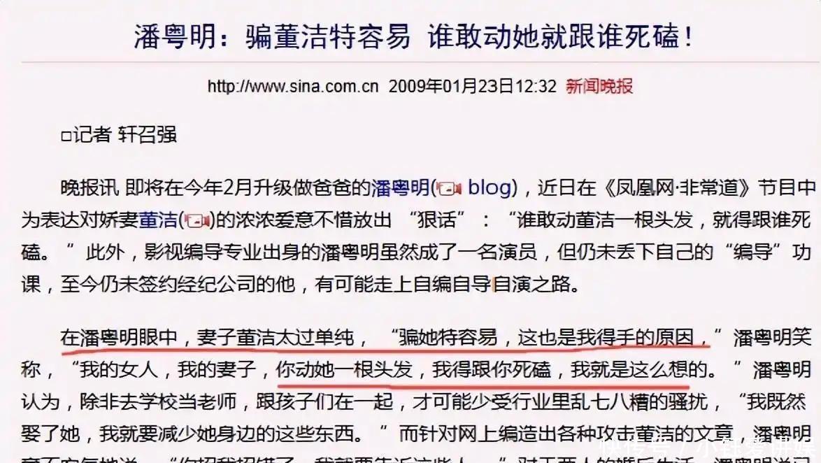 “若有人胆敢妄动董洁的一缕发丝,我必决不轻言罢休,誓与他一决高下。”2009年之际,潘粤明即将荣升为人父,他于媒体面前坦诚,力挺董洁,并明确表达了对她的坚定支持。他直言不讳地表示,正是由于董洁的纯真与易于哄骗,使得他们得以步入婚姻殿堂,而她在言谈间流露出的那份宠溺,更是其中的关键所在。